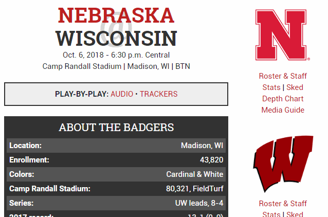 • Cumulative stats: Nebraska | Wisconsin