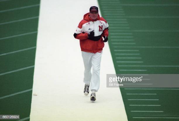 Tom Osborne jogging after practice at Memorial Stadium,Ā 12/7/1993