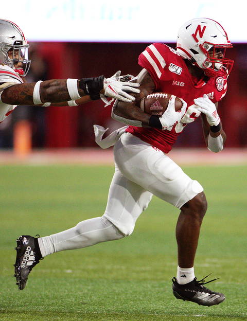 NEB: Adrian Martinez 15-81; Dedrick Mills 11-67; Wan'Dale Robinson 9-27; Maurice Washington 4-9.