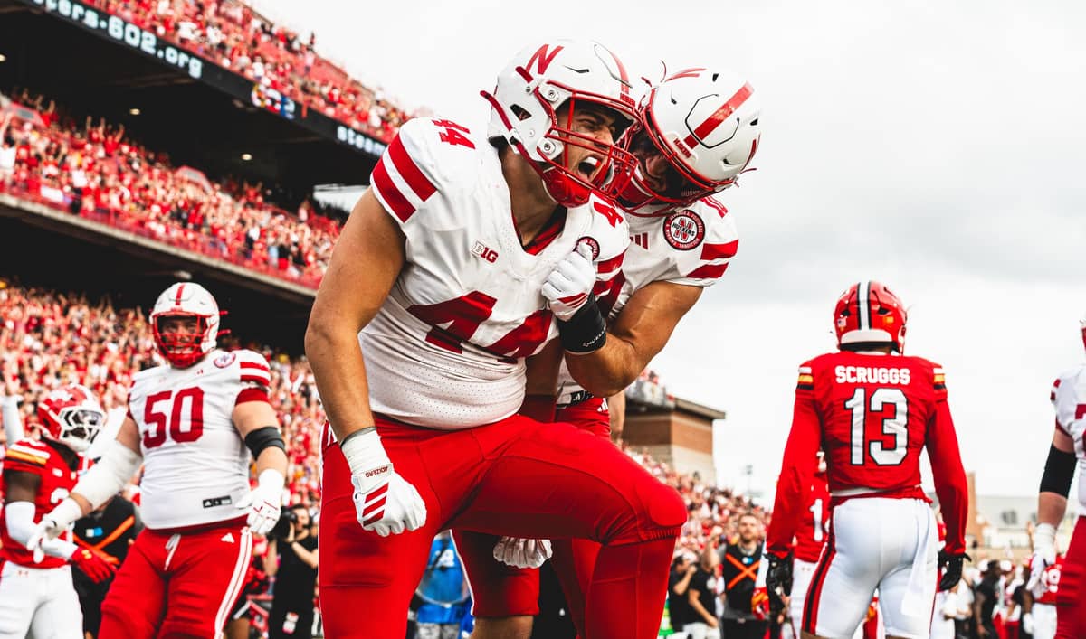 Taking over at their own 19 with 3:42 remaining after a Maryland punt, the Huskers got rolling with passes of 23 yards to tight end Luke Lindenmeyer and 33 yards to Nyziah Hunter ā the latter of which Raiola threw as he was falling backwards. That put the Huskers on the Maryland 20. A pass to Heinrich Haarberg got Nebraska to the 3, and from there Raiola tossed a pass to Dane Key, who made a leaping catch just short of the goal line and twisted into the end zone for the touchdown.