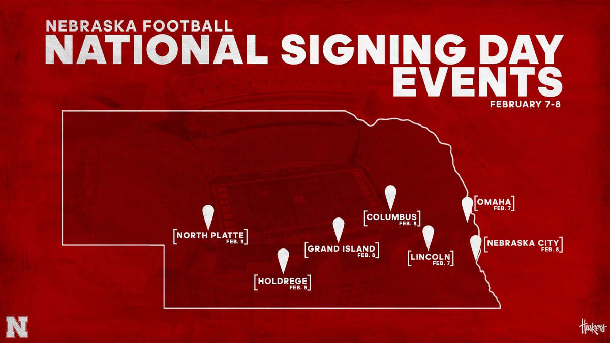 The Nebraska staff will host events at five locations on Thursday, Feb. 8. Groups of two Husker coaches will be in Grand Island, Holdrege, Columbus, Nebraska City and North Platte to greet Husker fans and discuss the 2018 recruiting class. All of the Thursday events will be free and open to the public and will run from 5-7 p.m. Fans must RSVP in advance to attend.