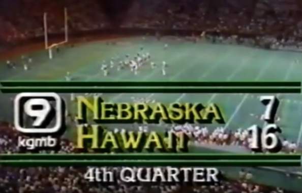 1982: Trailing by nine points in the fourth quarter, the Huskers explode for 30 points and pull out a 37-16 win at Hawaii. Meanwhile, Dave Rimington wins the Lombardi Award and places fifth in the Heisman voting.